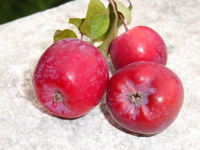 Estas maçãs são de jardim mas com esta cor tão linda fez-me lembrar a mação da madrasta da branca de neve.